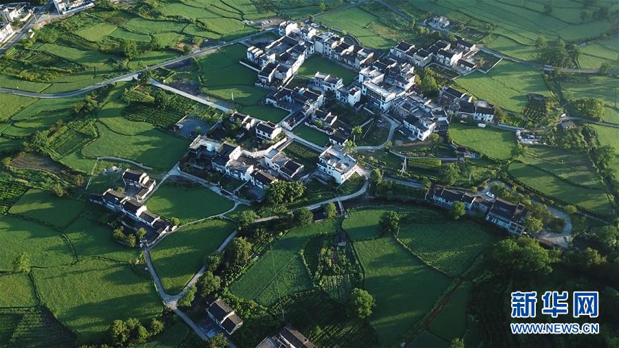 這是8月4日無人機(jī)拍攝的安徽黟縣宏村風(fēng)景區(qū)附近的村莊。新華社記者張端攝