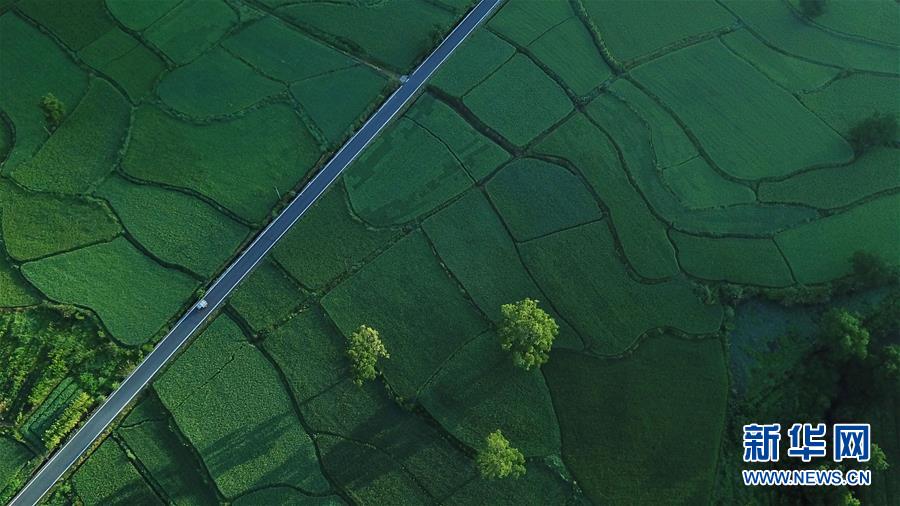 這是8月4日無人機(jī)拍攝的安徽黟縣宏村風(fēng)景區(qū)附近的農(nóng)田。新華社記者張端攝