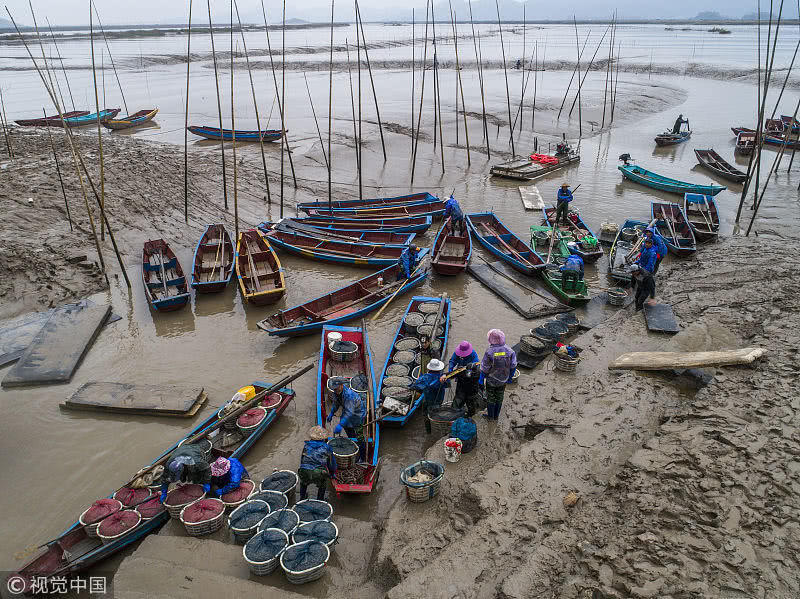 遼寧長海漁民打撈牡蠣 場面壯觀!