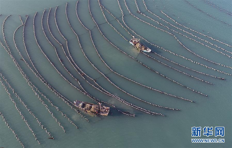 9月23日,漁民在捕撈牡蠣(無人機(jī)拍攝)。新華社記者龍雷攝