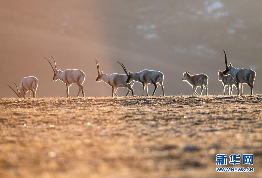 西藏羌塘自然保護區(qū)內的藏羚羊(2019年1月31日攝)。新華社記者普布扎西攝