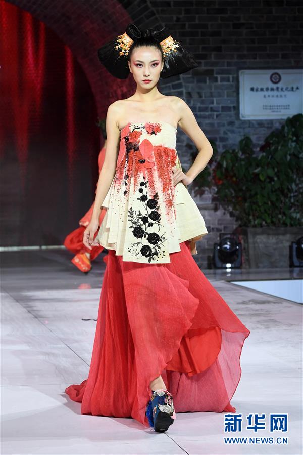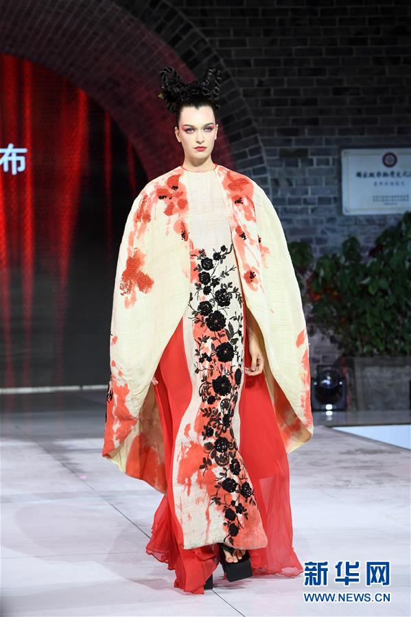 9月25日,模特在榮昌夏布·張義超非遺時尚大秀上展示時裝設(shè)計(jì)師張義超的時裝作品。