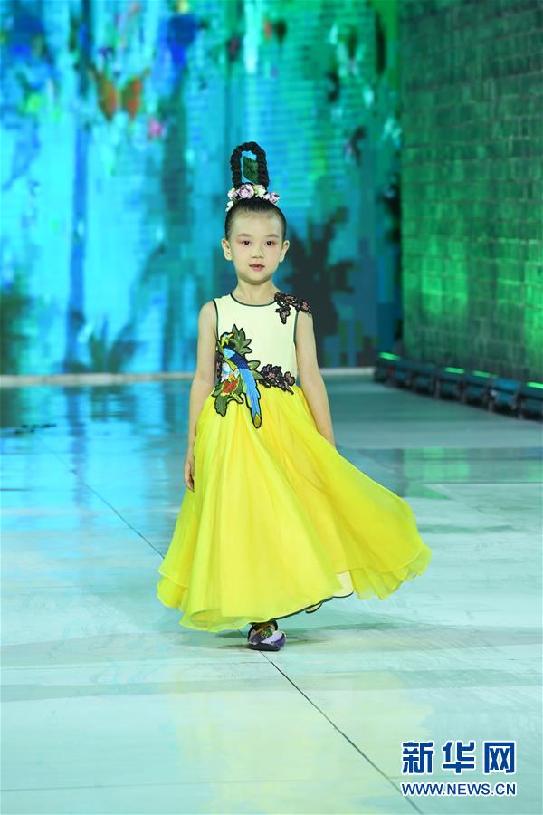 9月25日,小模特在榮昌夏布·張義超非遺時尚大秀上展示時裝設(shè)計(jì)師張義超的時裝作品 新華社記者 唐奕 攝