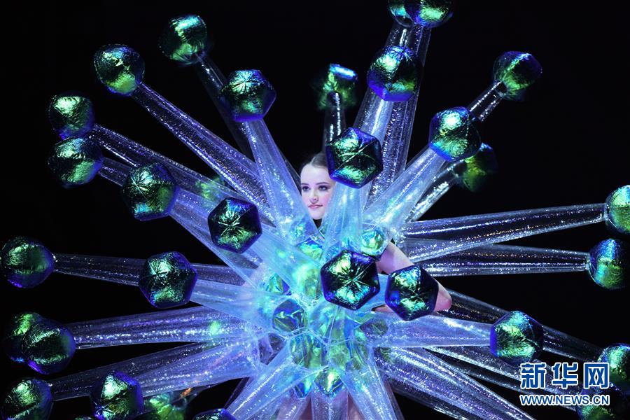 9月26日,在新西蘭首都惠靈頓舉行的世界可穿著藝術(shù)大賽年度秀場(chǎng)表演中,模特展示入圍作品。 新華社記者郭磊攝