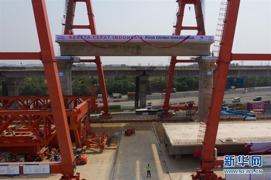 9月30日,雅萬高鐵全線首榀箱梁成功架設。 印度尼西亞雅萬高鐵全線首榀箱梁9月30日架設成功,高鐵建設繼續(xù)穩(wěn)步推進。雅萬高鐵全長142公里,最高設計時速350公里,2018年6月全面開工,總工期為36個月,今年是施工建設全面提速的關(guān)鍵年。建成通車后,雅加達至萬隆的時間將由現(xiàn)在的3個多小時縮短至40分鐘。 新華社記者 杜宇 攝