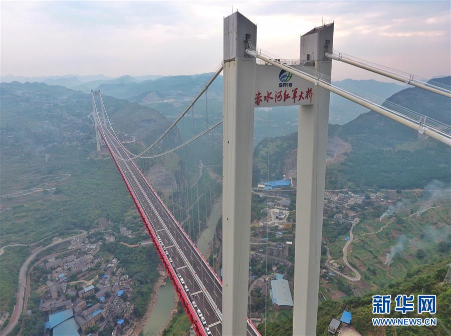 9月30日無人機(jī)拍攝的赤水河紅軍大橋。新華社記者劉坤攝