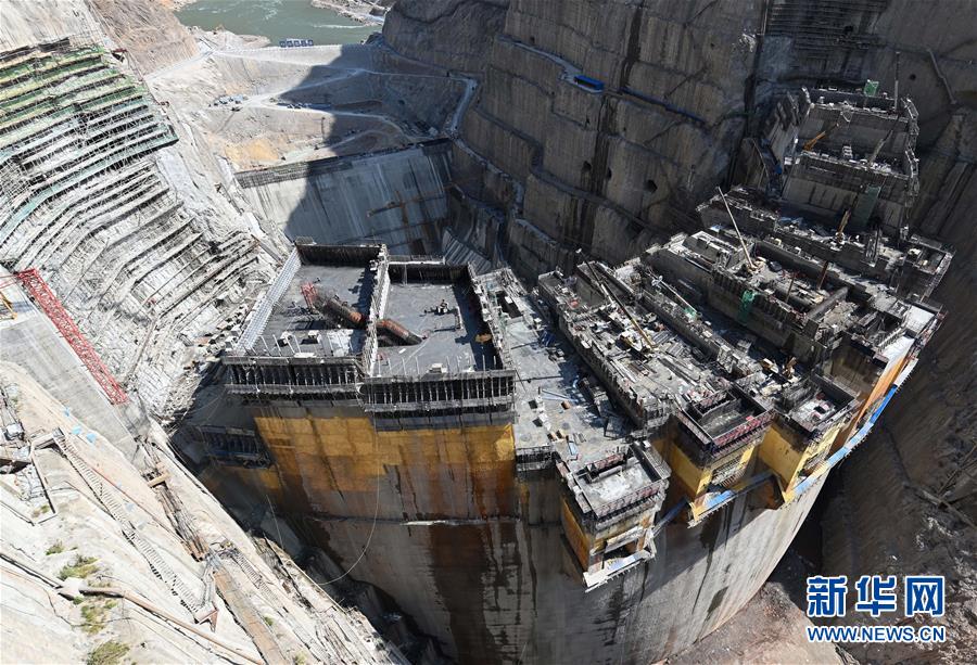 這是用無(wú)人機(jī)拍攝的建設(shè)中的烏東德水電站全景(5月30日攝)。新華社記者陳曄華攝