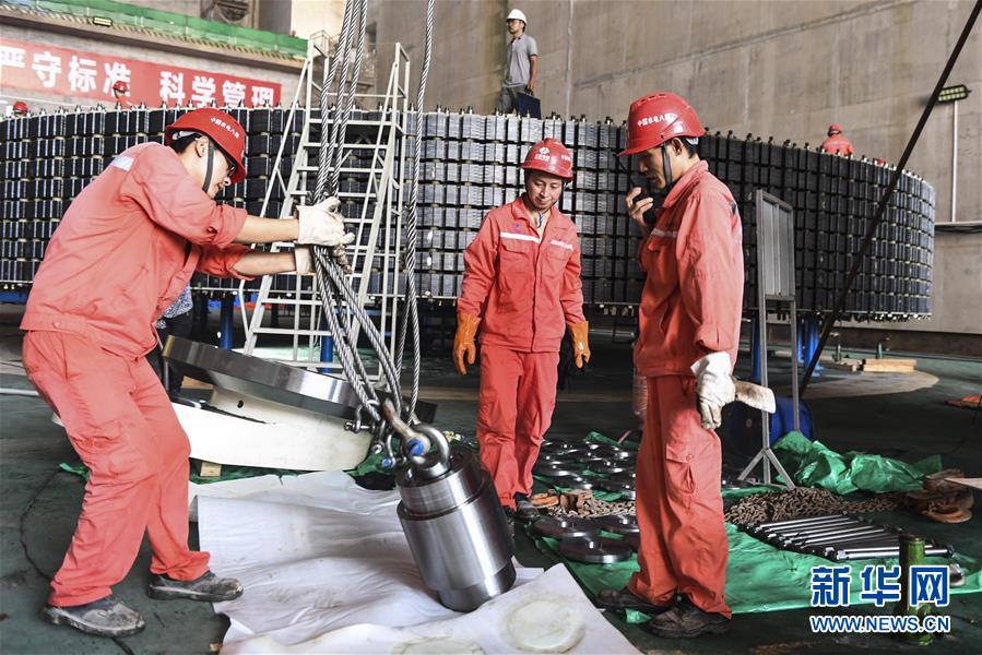 5月30日,工人在烏東德水電站左岸地下電站主廠房?jī)?nèi)工作。新華社記者陳曄華攝