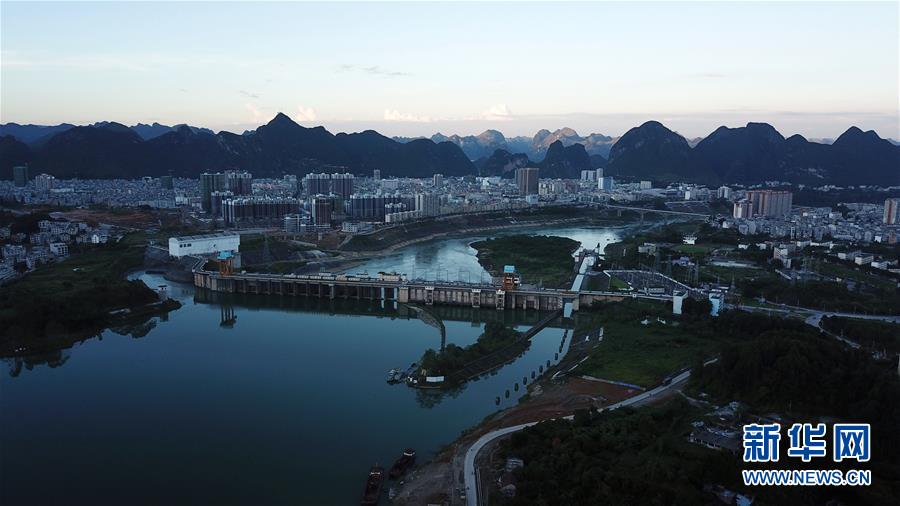 這是位于廣西大化縣境內(nèi)的大化水電站大壩(9月19日無(wú)人機(jī)拍攝)。新華社記者張愛(ài)林?jǐn)z