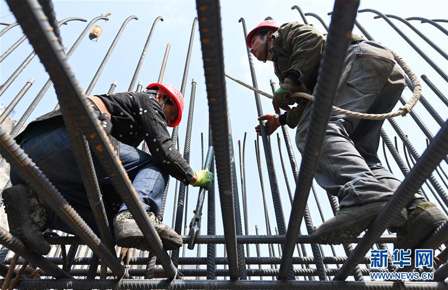 5月31日,工人在烏東德水電站的二道壩工地施工。新華社記者陳曄華攝