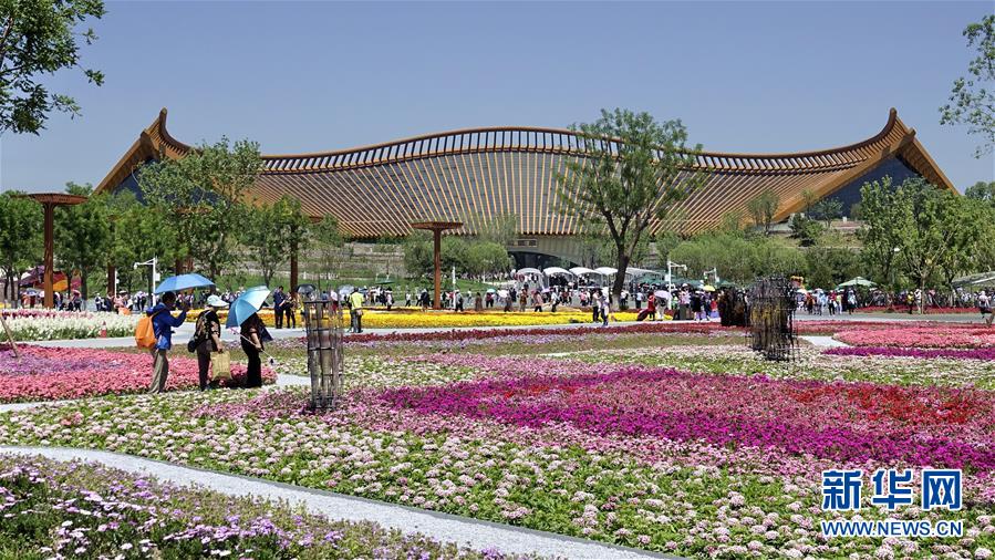 游客在北京世園會中國館前游覽(5月23日攝)。 新華社記者 李欣 攝