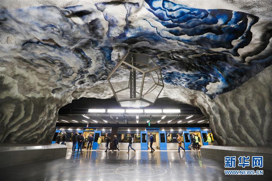 10月9日,在瑞典斯德哥爾摩,乘客在一處地鐵站內行走。新華社記者鄭煥松攝