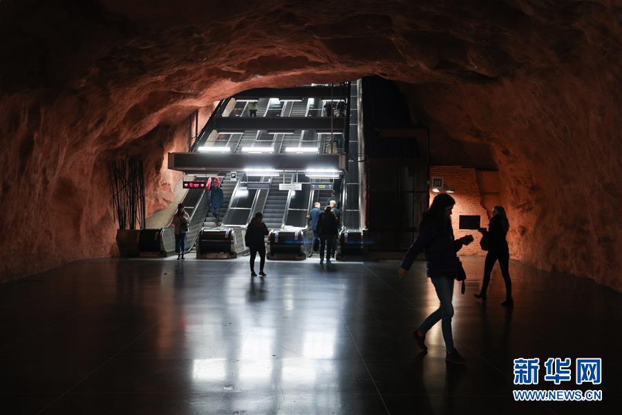 10月8日,在瑞典斯德哥爾摩,乘客在一處地鐵站內(nèi)行走。新華社記者鄭煥松攝