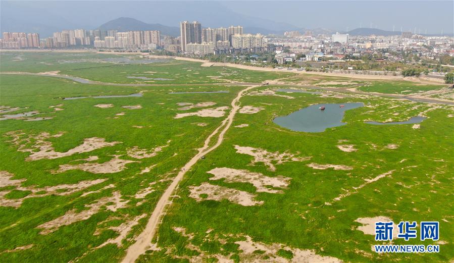 中國最大淡水湖鄱陽湖水位下降 落星墩重現(xiàn)天日