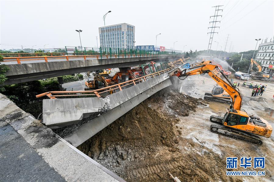 這是10月11日拍攝的江蘇無錫高架橋側翻事故救援現(xiàn)場。新華社記者李博攝