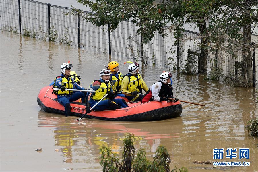 10月14日,在日本長野市,當(dāng)?shù)鼐仍藛T展開搜救工作。受縱貫東日本強(qiáng)臺(tái)風(fēng)“海貝思”帶來的強(qiáng)降雨影響,日本多地暴發(fā)洪災(zāi),已造成33人死亡、19人失蹤。據(jù)日本共同社13日統(tǒng)計(jì),“海貝思”過境導(dǎo)致日本多處河流泛濫,目前有21條河流決堤24處。其中,流經(jīng)長野縣的千曲川決堤,造成長野市和千曲市大范圍被淹,大片住宅區(qū)被洪水包圍,有的房屋甚至被淹至2層。新華社記者華義攝