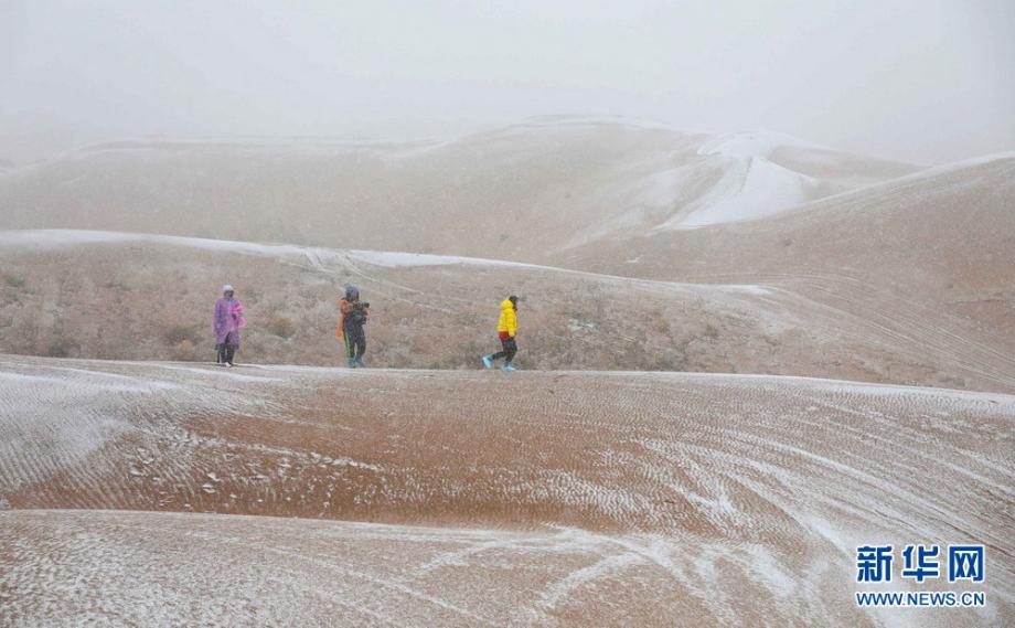 10月15日,游客在寧夏中衛(wèi)市沙坡頭景區(qū)欣賞沙漠雪景。深秋時(shí)節(jié),位于騰格里沙漠邊緣的寧夏中衛(wèi)市沙坡頭景區(qū)迎來一場(chǎng)降雪。漫漫黃沙被覆蓋在皚皚白雪之下,呈現(xiàn)出一種別樣的美。新華網(wǎng)杜文杰攝
