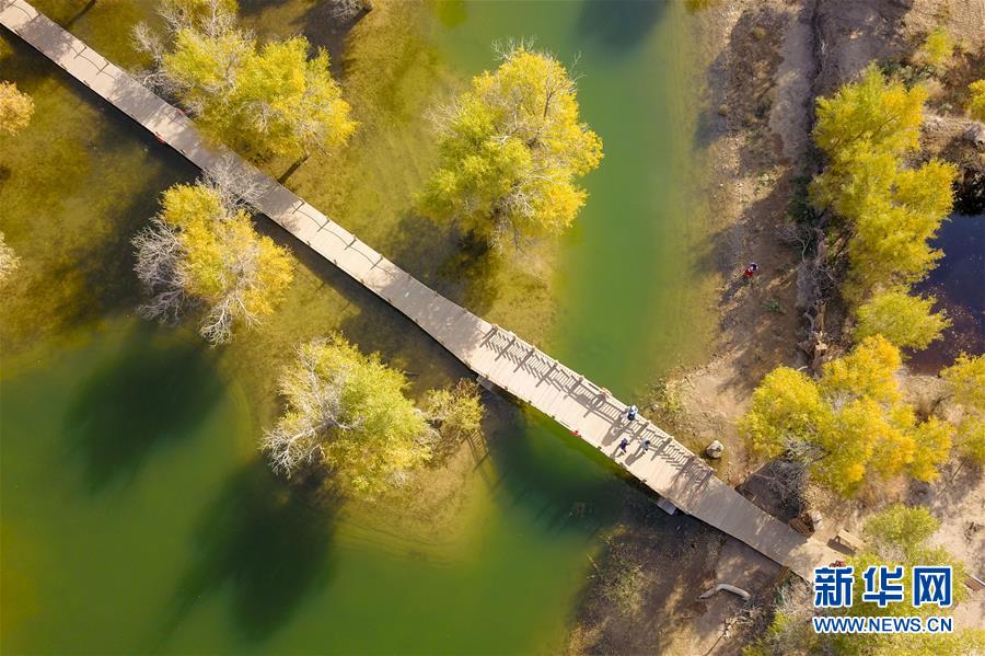 10月16日無人機(jī)拍攝的內(nèi)蒙古阿拉善盟額濟(jì)納旗境內(nèi)的胡楊林。新華社記者彭源攝