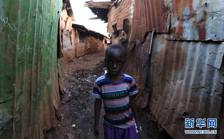 10月16日,在肯尼亞內羅畢基貝拉貧民窟,一名兒童在小巷中行走。新華社記者王騰攝