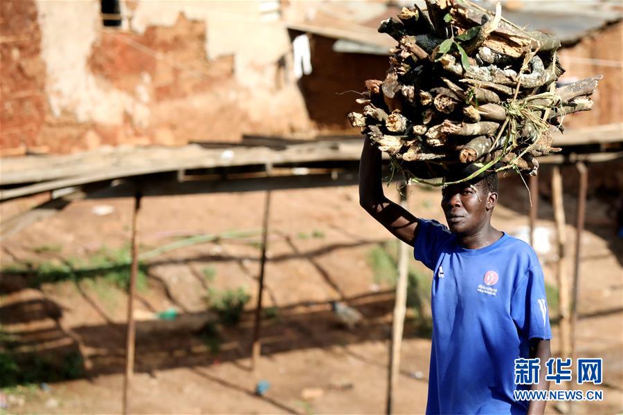 10月16日,在肯尼亞內羅畢基貝拉貧民窟,一名男子運送劈柴。新華社記者王騰攝