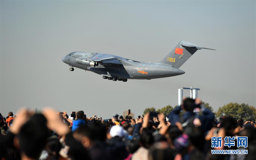 10月17日,大型運(yùn)輸機(jī)運(yùn)-20進(jìn)行飛行展示。  新華社記者 林宏 攝