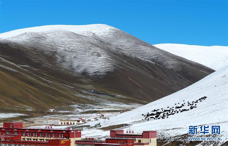 10月17日,在川藏線高爾寺山至理塘路段,部分游客在一個路邊觀景臺附近拍照留念。當日,一場夜雪后,川藏線高爾寺山至理塘路段披上了一層銀裝。雪山、牦牛、云朵、松林,帶來了濃濃的雪域風情。 新華社記者 王迪 攝