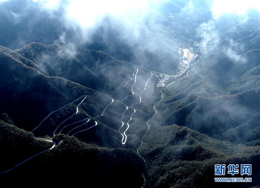 10月16日拍攝的漢中市南鄭區(qū)龍頭山風(fēng)景區(qū)(無人機(jī)拍攝)。 新華社記者 張博文 攝
