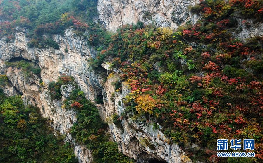 這是西狹頌景區(qū)秋景(10月16日無人機(jī)拍攝)。新華社記者陳斌攝