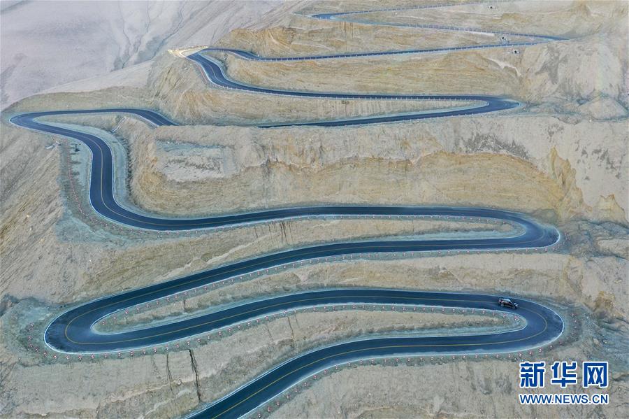 這是10月20日無人機(jī)拍攝的新疆塔什庫爾干塔吉克自治縣吾格亞提盤山公路。在中國西陲的新疆帕米爾高原,塔什庫爾干塔吉克自治縣縣城到瓦恰鄉(xiāng)之間有條蜿蜒的盤山公路,海拔超4200米,全長36公里,最大落差近1000米,被當(dāng)?shù)厝朔Q為“高原天路”。盤山公路彎曲盤旋的走勢與周邊雄渾壯麗的風(fēng)光,共同構(gòu)成一幅壯美畫卷。這條公路名為吾格亞提盤山公路,2019年7月投入使用,便利了山區(qū)農(nóng)牧民的出行。新華社記者丁磊攝