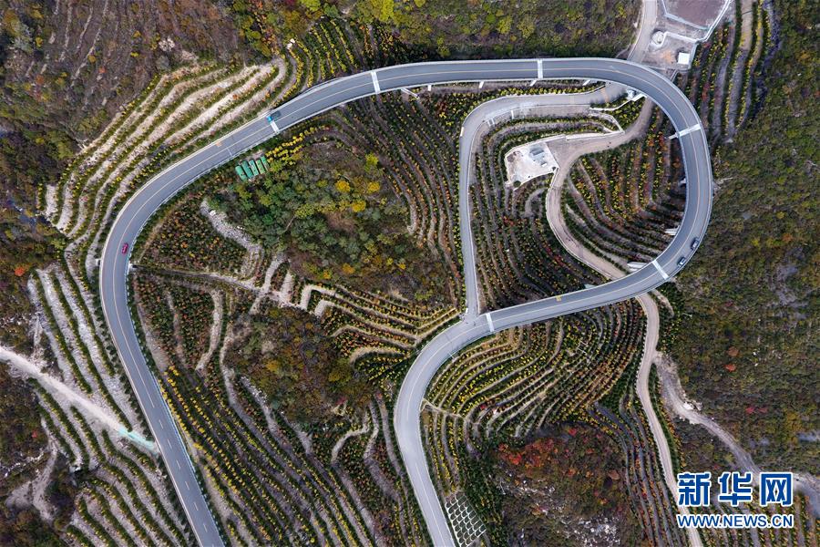 車輛行駛在山西省太原市玉泉山盤山公路上(10月22日無(wú)人機(jī)拍攝)。