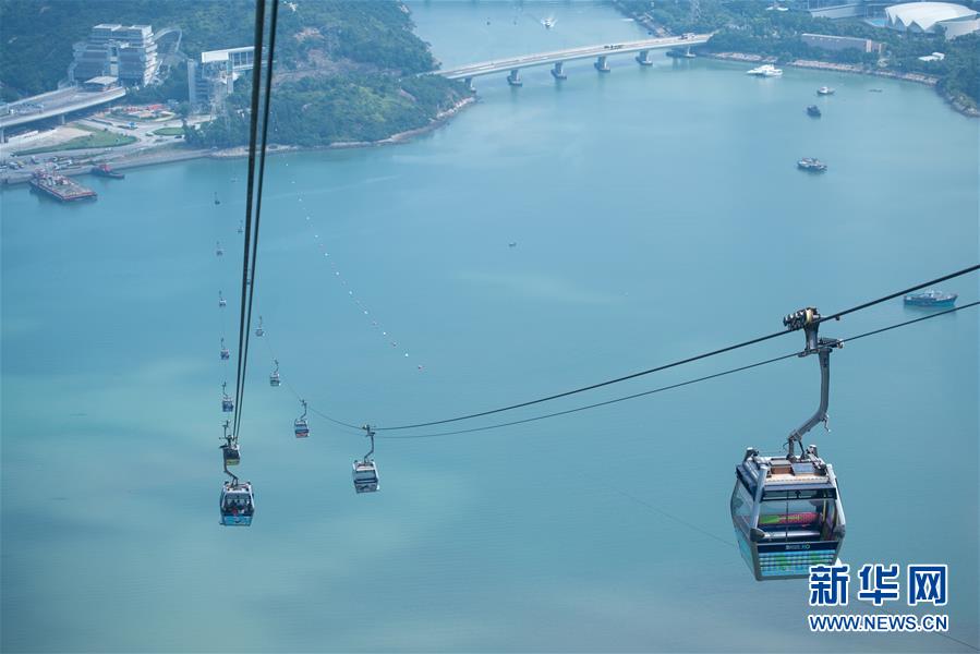 10月24日上午拍攝的香港昂坪360纜車。2018年10月23日,港珠澳大橋正式開通。新華社記者張金加攝