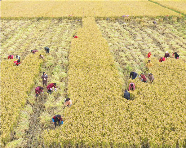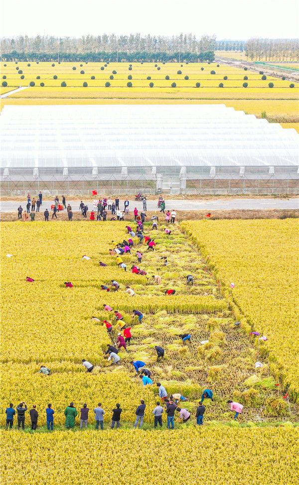 2019年10月26日,江蘇省宿遷市泗洪縣在稻米小鎮(zhèn)石集鄉(xiāng)舉行具有地方特色的割稻比賽,近60名選手在金色稻田揮舞銀鐮、緊張角逐。