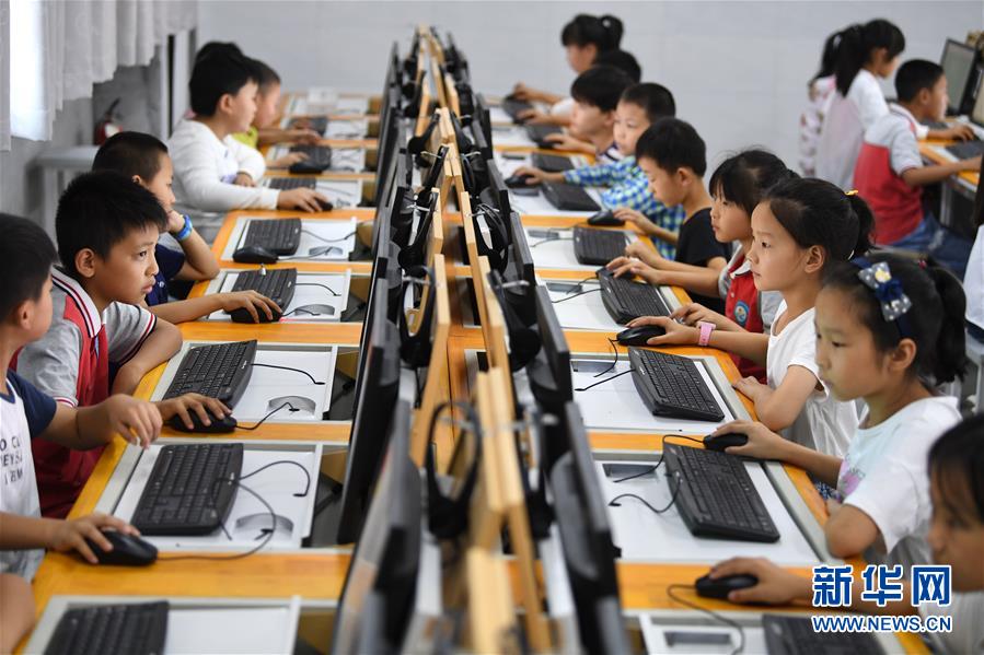 9月3日,金寨縣希望小學(xué)南校區(qū)學(xué)生在上計(jì)算機(jī)課。新華社記者劉軍喜攝