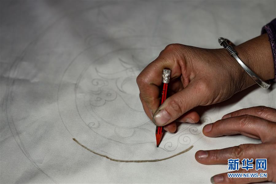 10月28日,楊芳在設(shè)計(jì)蠟染圖案。新華社記者 歐東衢 攝