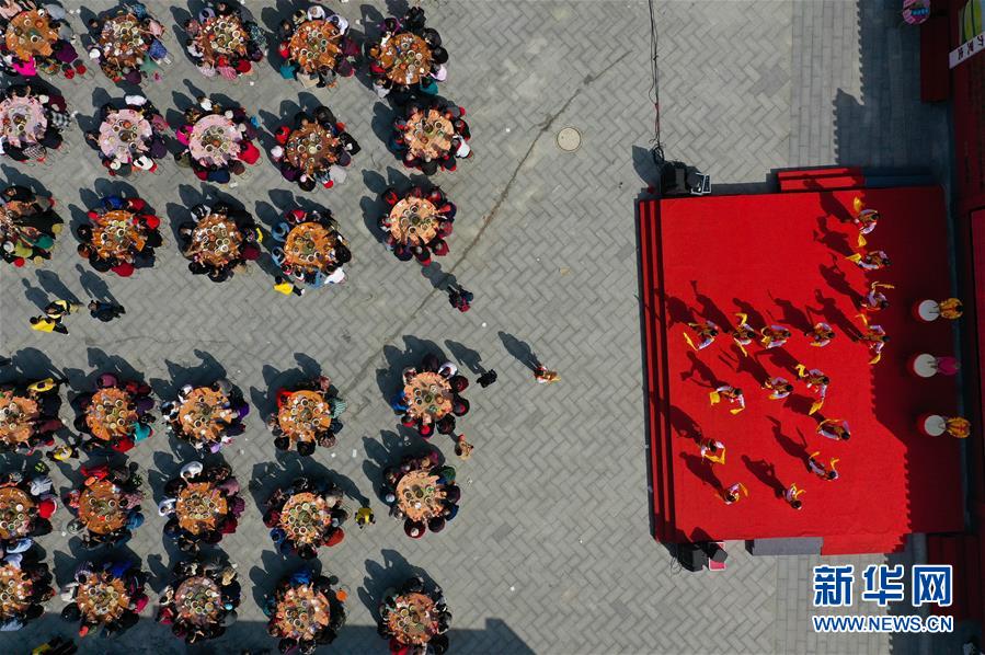 11月2日,南京仙林街道仙林新村社區(qū)居民參加千家宴(無人機拍攝)。 新華社記者 季春鵬 攝