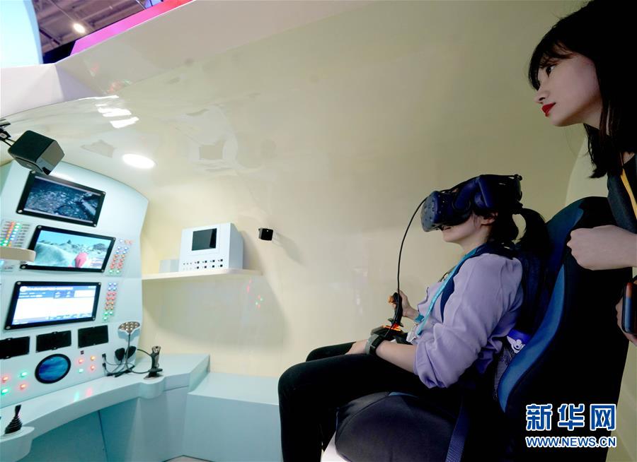 11月5日,觀眾在第二屆進博會中國館“深海勇士”體驗倉內(nèi)體驗。新華社記者陳建力攝