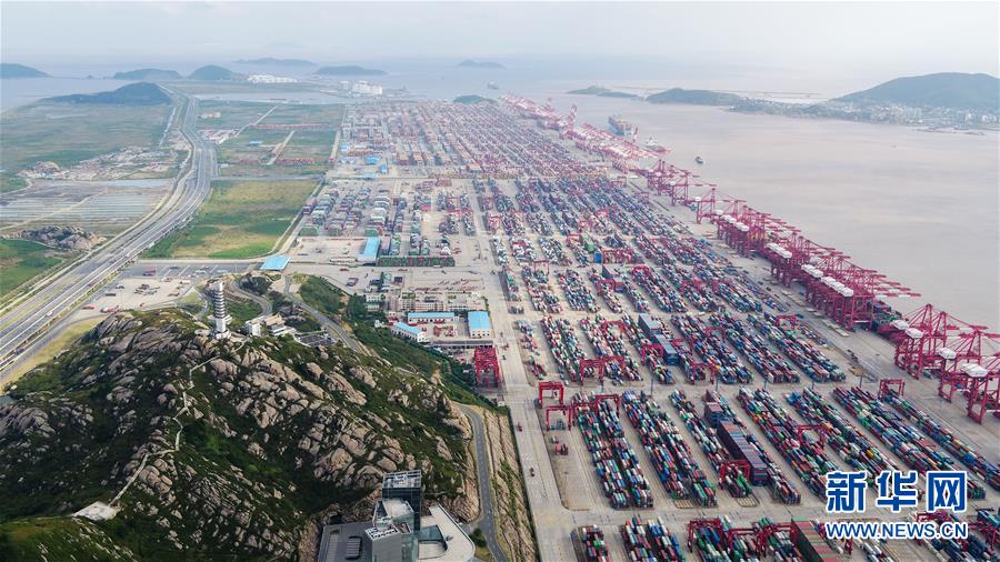 上海洋山深水港(10月16日無人機拍攝)。新華社記者丁汀攝