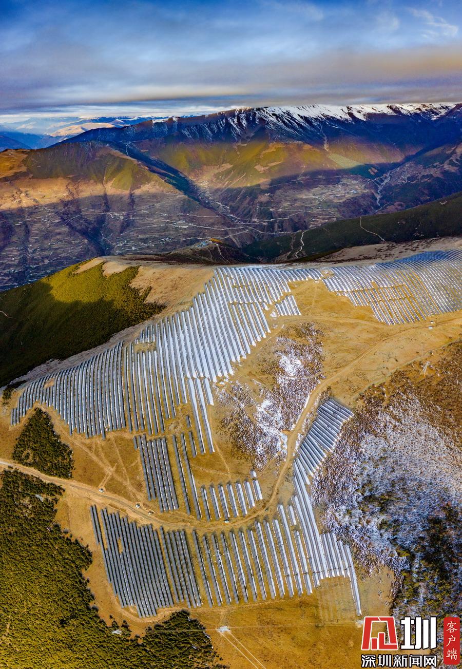 位于海拔3900米的四川省阿壩州小金縣大壩口村,場面壯觀的光伏發(fā)電廠占據(jù)了整個山脈。