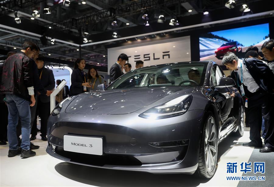 參觀者在第二屆進博會汽車展區(qū)特斯拉展臺參觀特斯拉MODEL3汽車(11月6日攝)。新華社記者丁汀攝