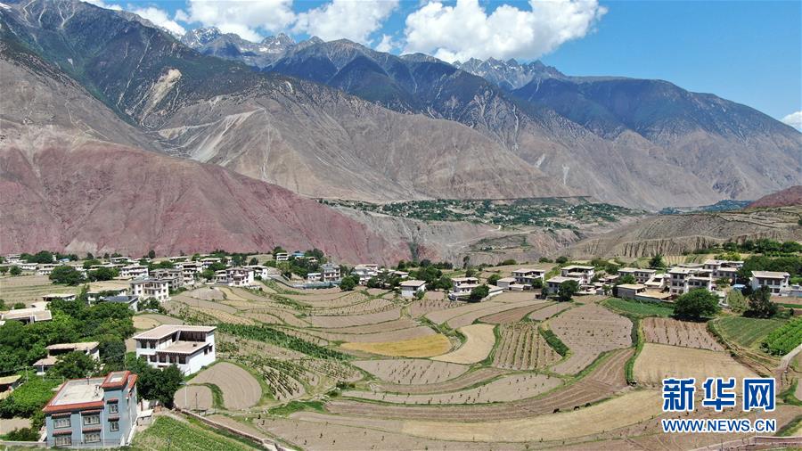 西藏昌都市芒康縣納西民族鄉(xiāng)風貌(6月3日攝)。從陶瓷大缸里舀上一碗碗紅酒,端到來客面前雙手敬上,如同藏家農民為客人斟上青稞酒一般,這是西藏昌都市芒康縣納西民族鄉(xiāng)百姓的待客之道。紅酒是當?shù)匾环N“土特產”,家家戶戶基本都會釀制,采用傳統(tǒng)自然發(fā)酵方法。當?shù)匕傩蔗勚萍t酒的歷史,可追溯至19世紀。芒康縣將葡萄酒作為重點產業(yè)予以扶持,已建成萬畝葡萄基地。這也帶動了當?shù)厝罕姺N植葡萄的積極性,成為群眾重要的現(xiàn)金收入來源。新華社記者晉美多吉攝