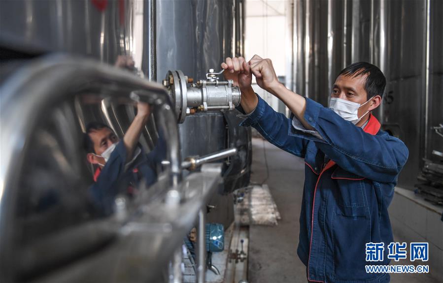 西藏芒康縣藏東珍寶酒業(yè)有限公司的工人在檢修制酒設備(6月3日攝)。新華社記者晉美多吉攝