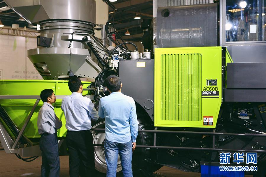 11月16日,參觀者在展會(huì)現(xiàn)場(chǎng)參觀甘蔗收割機(jī)械設(shè)備。
