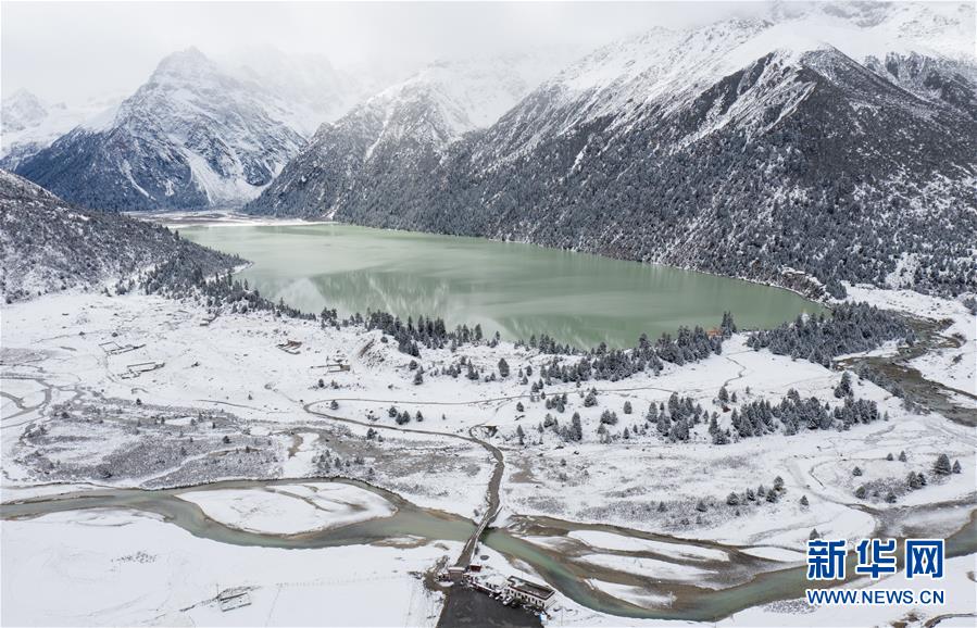 俯瞰317國道邊的四川玉隆拉措(11月1日無人機拍攝)。川藏公路又稱川藏線,全長2000多公里,從成都到拉薩包括北線317國道主要路段、南線318國道部分路段。全線海拔落差大,沿途分布著眾多冰川、草原、峽谷、河流、湖泊、溫泉、森林、村寨等原生態(tài)自然景觀和豐富多彩的人文景觀,被譽為“中國最美景觀大道”。新華社記者江宏景攝