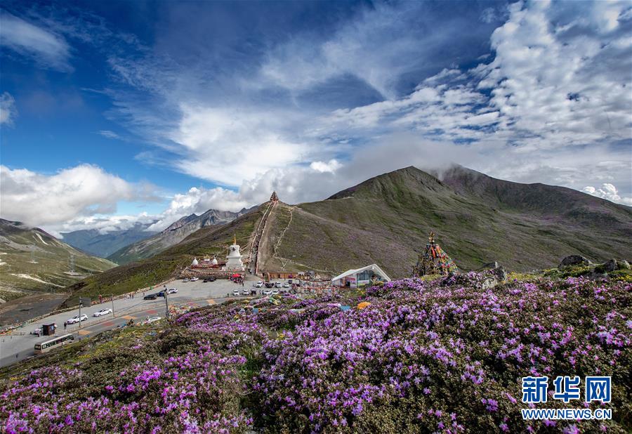 杜鵑花在川藏公路四川折多山埡口盛開(6月28日攝)。新華社記者江宏景攝