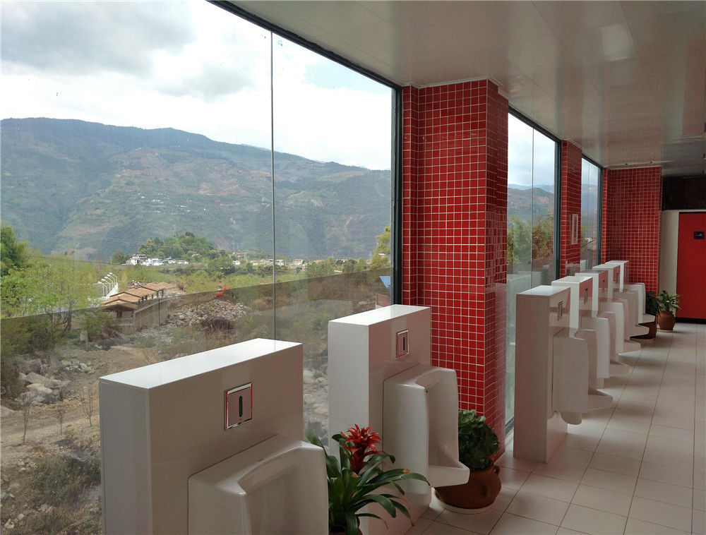 2017年4月7日,云南省大理州石門關(guān)景區(qū)的透明廁所。廁所外觀落地玻璃采用單透膜,讓游客邊上廁所,還可以邊欣賞景區(qū)優(yōu)美的風(fēng)景。李明/視覺中國