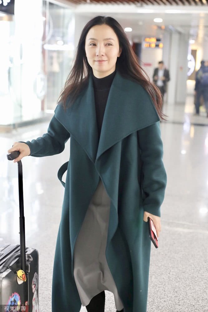 47歲陶虹獨自現(xiàn)身機場 穿綠大衣溫婉大方 面對鏡頭笑容親切