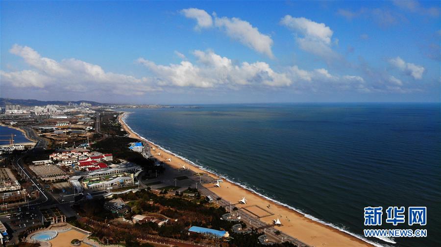 11月22日無人機(jī)拍攝的日照市萬平口海濱風(fēng)景區(qū)。山東省日照市萬平口海濱風(fēng)景區(qū)是當(dāng)?shù)芈糜蔚囊粡垺懊?,該景區(qū)憑借優(yōu)美的海灘、良好的水質(zhì)吸引了不少游客。新華社記者王凱攝