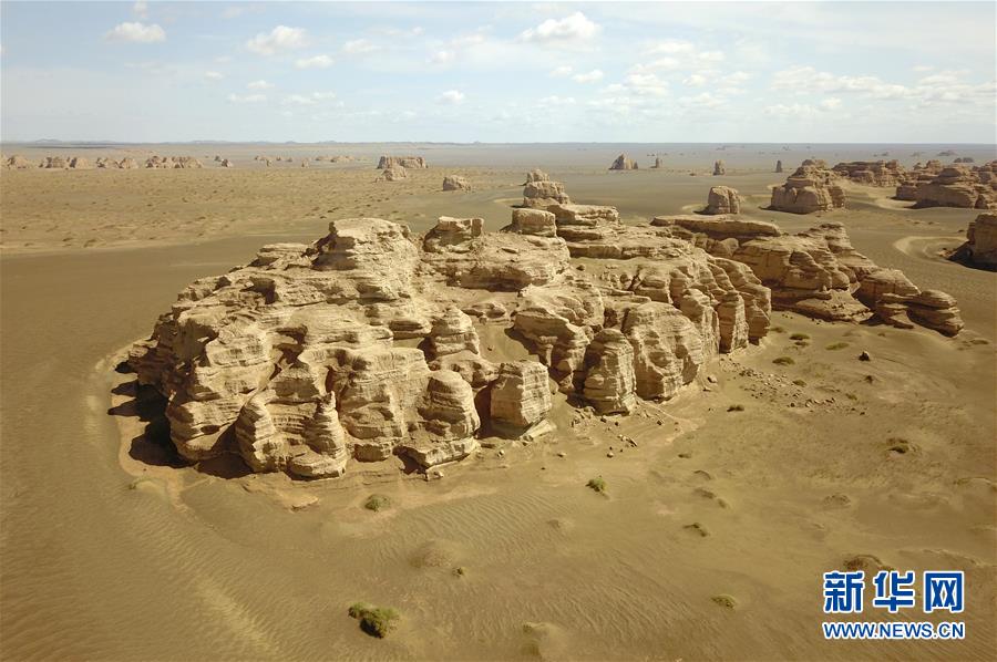 這是5月8日無人機拍攝的敦煌雅丹國家地質(zhì)公園雨后景色。新華社記者范培珅攝