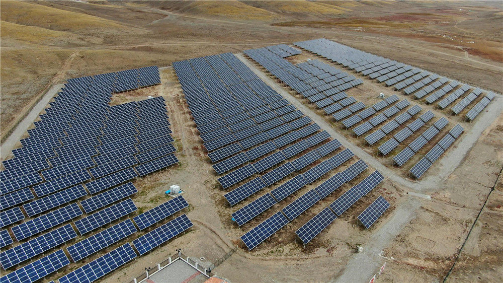 2019年10月10日,位于青海省果洛藏族自治州瑪多縣境內(nèi)的中國(guó)海拔最高村級(jí)光伏扶貧電站。