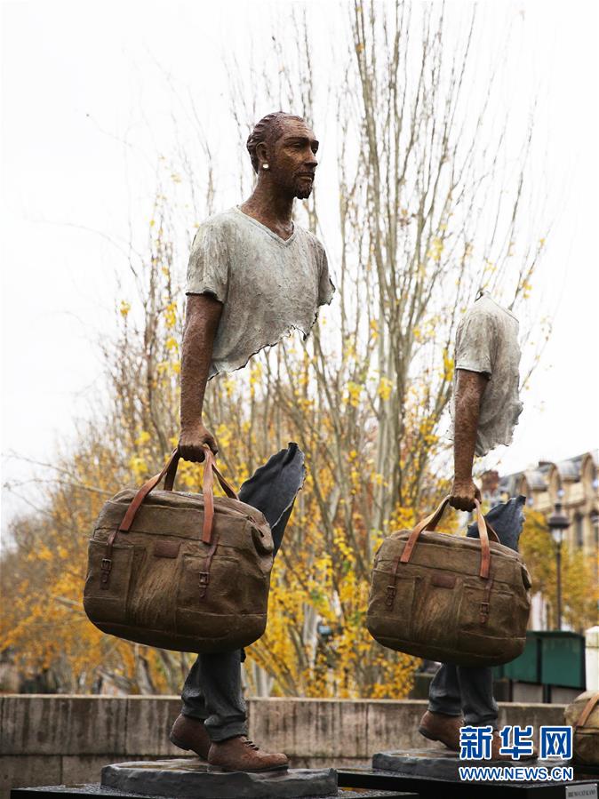 這是11月27日在法國(guó)巴黎街頭拍攝的雕塑作品。新華社記者高靜攝